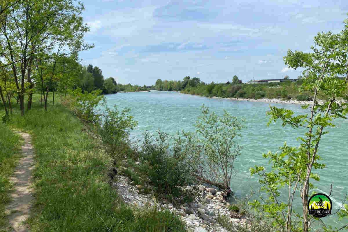 Il tracciato, una strada sterrata facile e pianeggiante, si snoda tra golene verdi, campi coltivati e filari di pioppi, mantenendo sempre il fiume come fedele compagno di viaggio. La pedalata rilassata permette di ammirare la flora fluviale e ascoltare il suono dell’acqua che scorre placida.