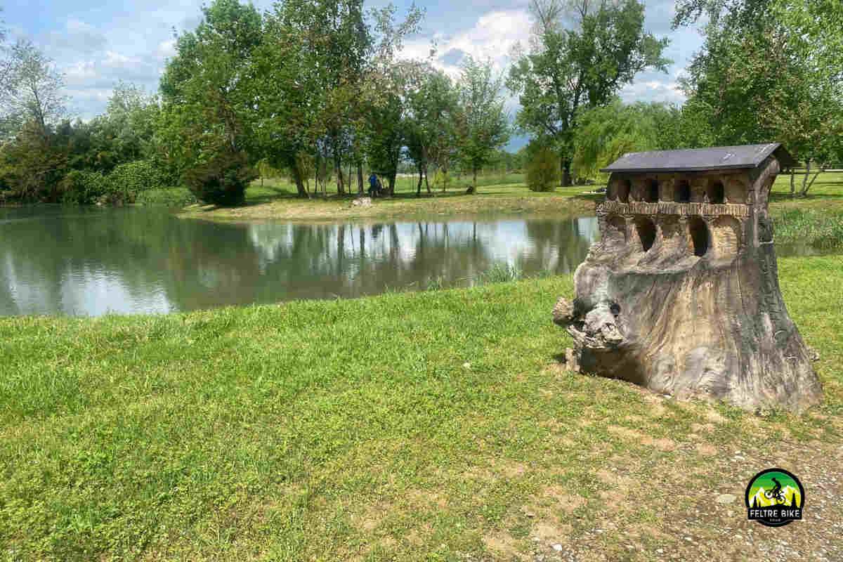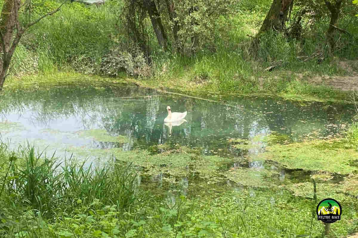 Raggiungendo le terre basse di Cartigliano, il paesaggio si apre ulteriormente: ampi spazi rurali si alternano a tratti più ombreggiati, ideali per una sosta rinfrescante. Da qui si prosegue verso i tranquilli specchi d’acqua dei laghi di Mazzole e Grantorto, piccoli paradisi naturalistici perfetti per una breve pausa fotografica o semplicemente per godersi l’atmosfera silenziosa e rilassante.